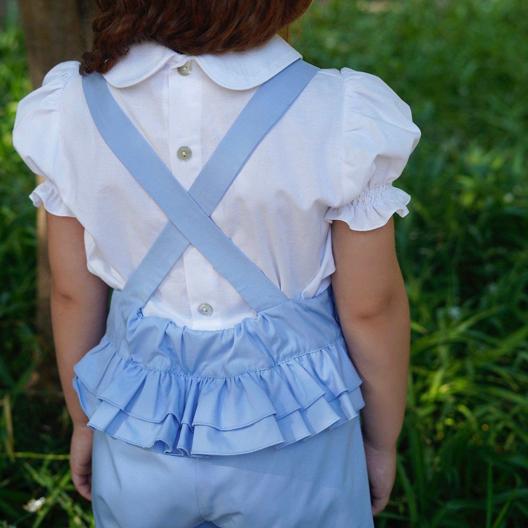 Bow Ruffle Pinafore Playsuit & Blouse - Blue