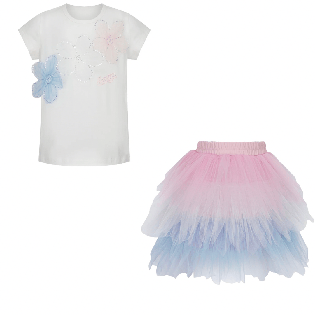 Ceremony Embellished Motif Tutu Skirt Set - White