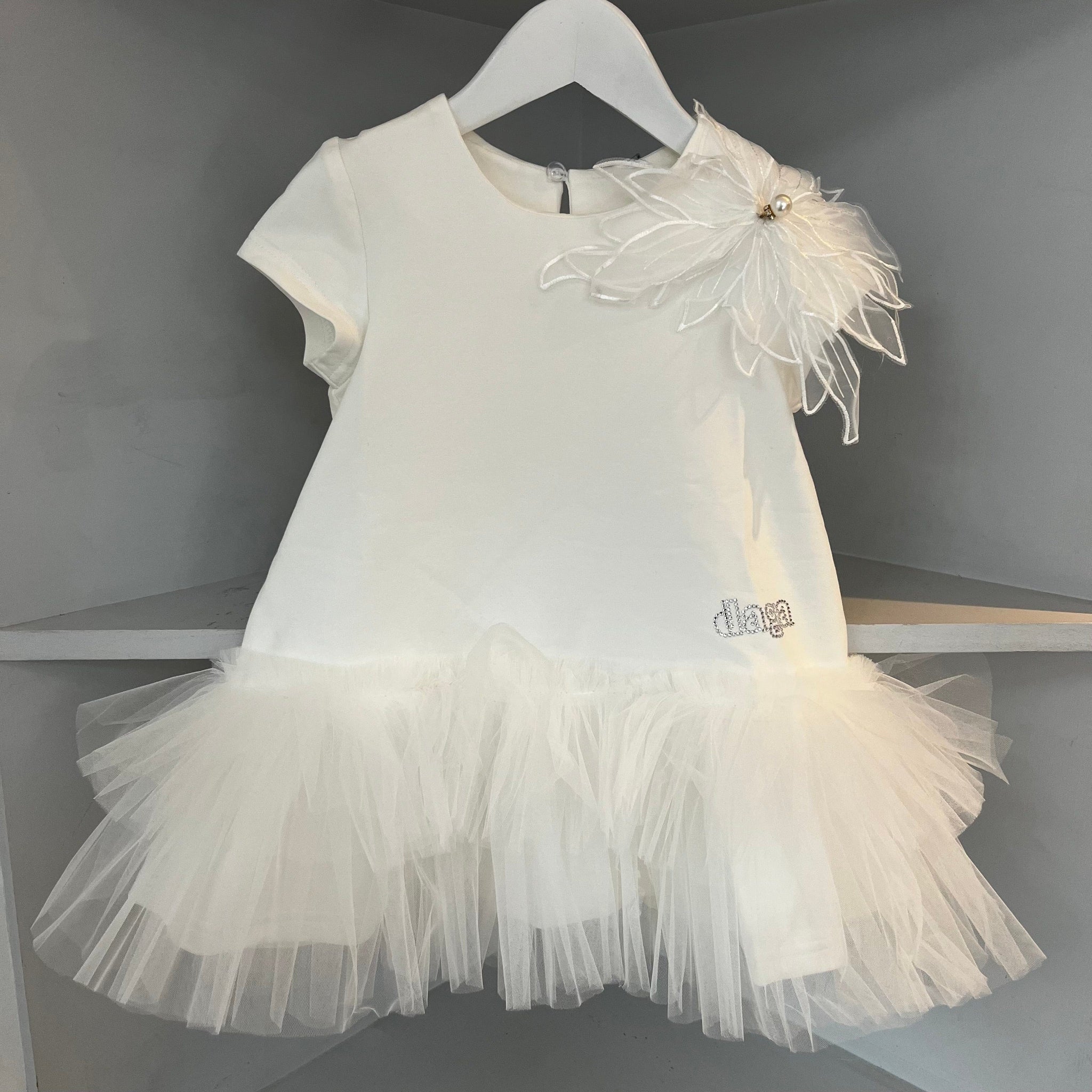 Ceremony Embellished Shoulder Motif Tutu Dress - Cream