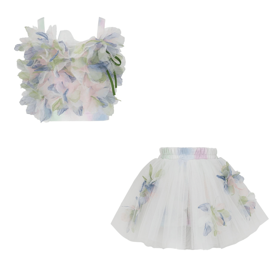 Pastel Bloom Embellished Tutu Skirt Set - White