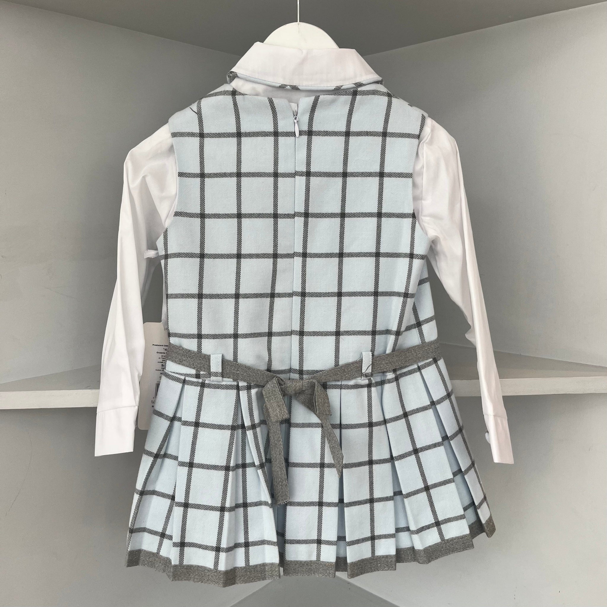 Exclusive Check Pinafore Dress & Blouse - Blue