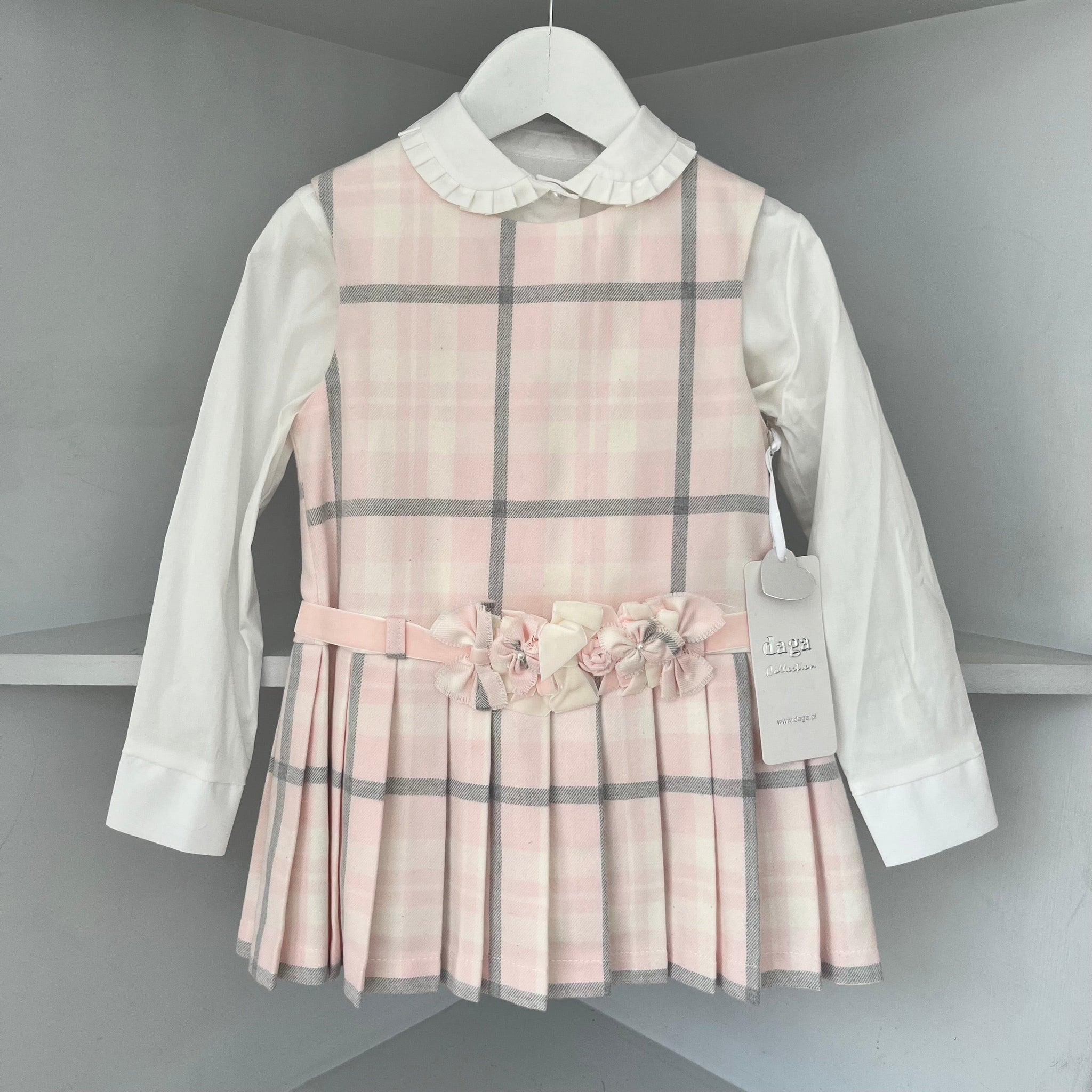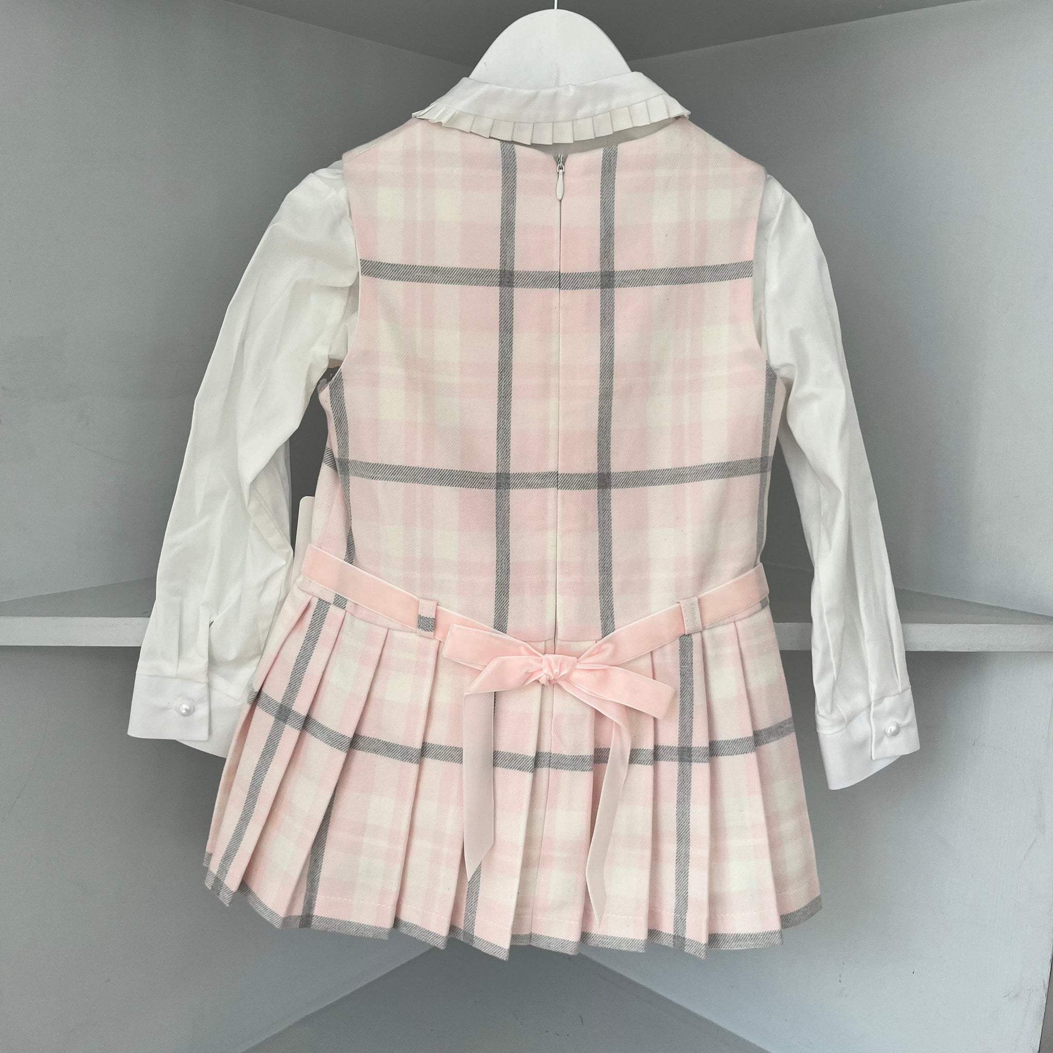 Exclusive Check Pinafore Dress & Blouse - Pink