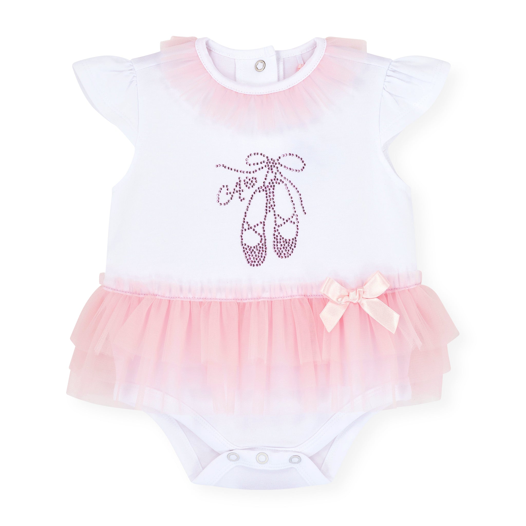 Perfectly Pink Octavia Tulle Romper - White
